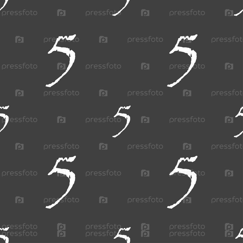 Номер пять. Бесшовный узор на сером фоне. Вектор