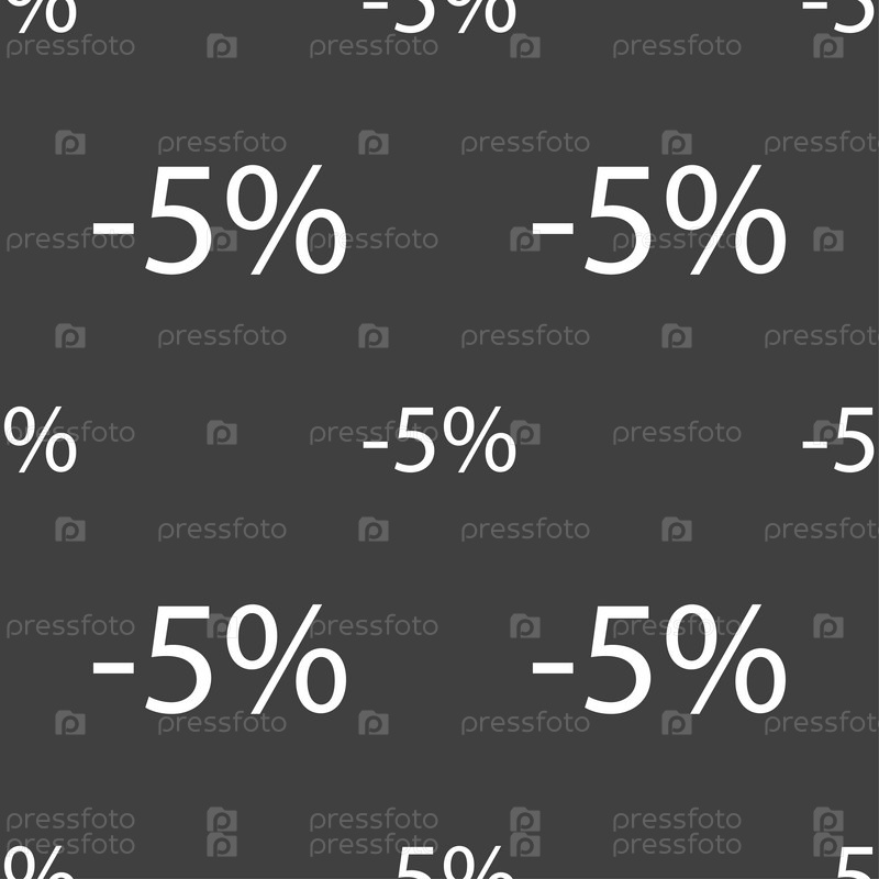 5% скидка. Бесшовный узор на сером фоне. Вектор