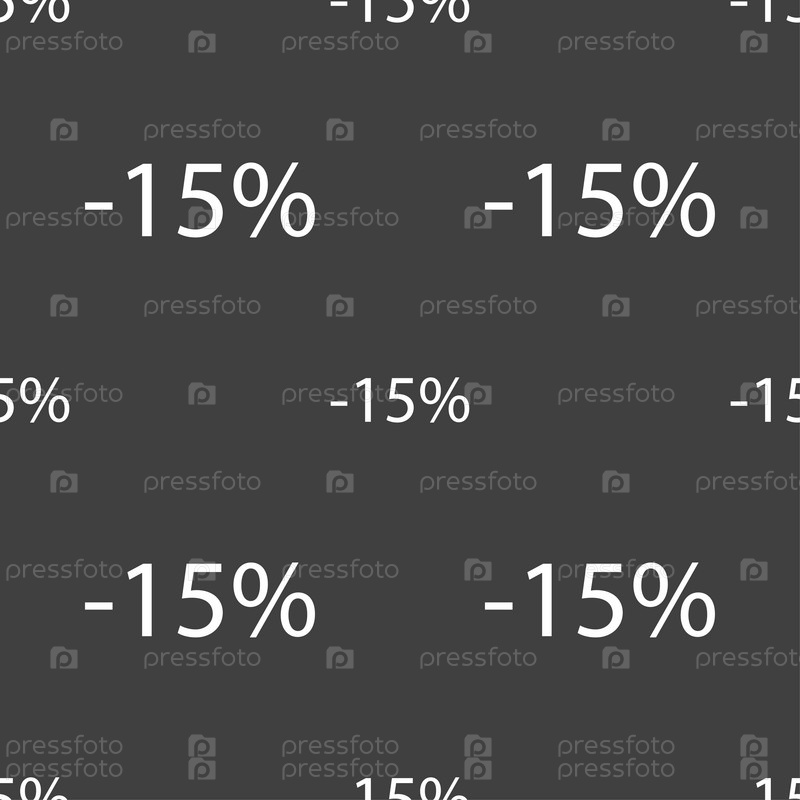 15% скидка. Бесшовный узор на сером фоне. Вектор
