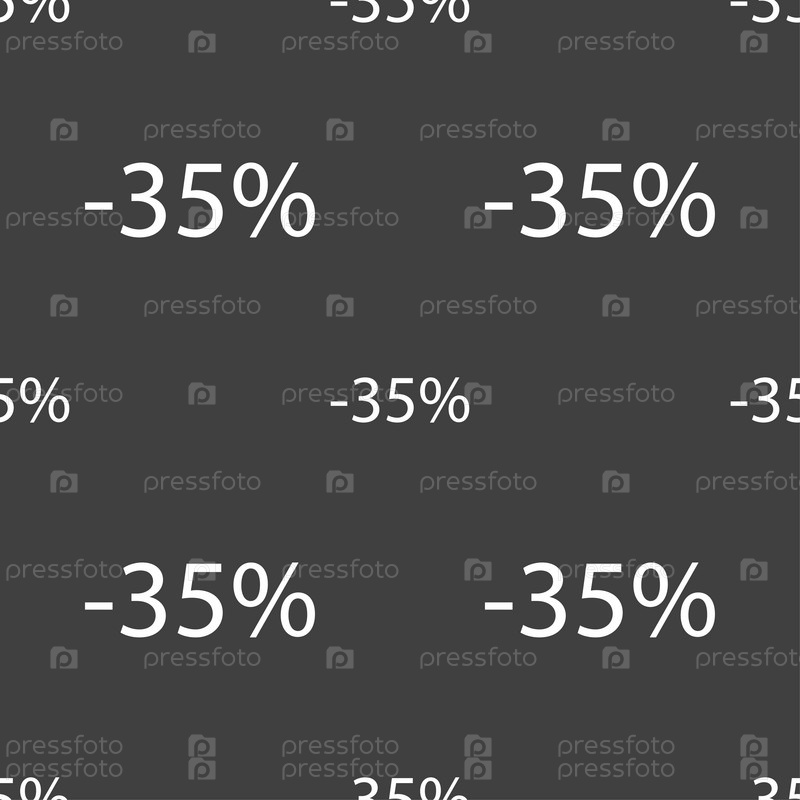35% скидка. Бесшовный узор на сером фоне. Вектор
