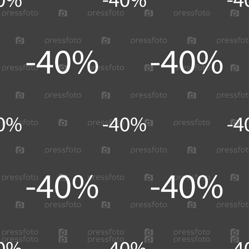 40% скидка. Бесшовный узор на сером фоне. Вектор