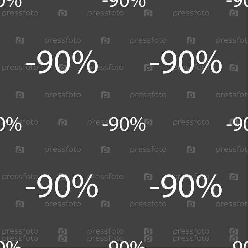 90% скидка. Бесшовный узор на сером фоне. Вектор