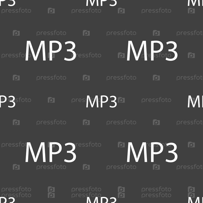 Иконка формата MP3 музыки. Бесшовный узор на сером фоне. Вектор