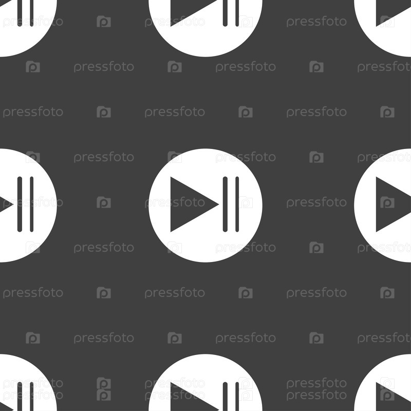 Играть значок кнопки. Бесшовный узор на сером фоне. Вектор