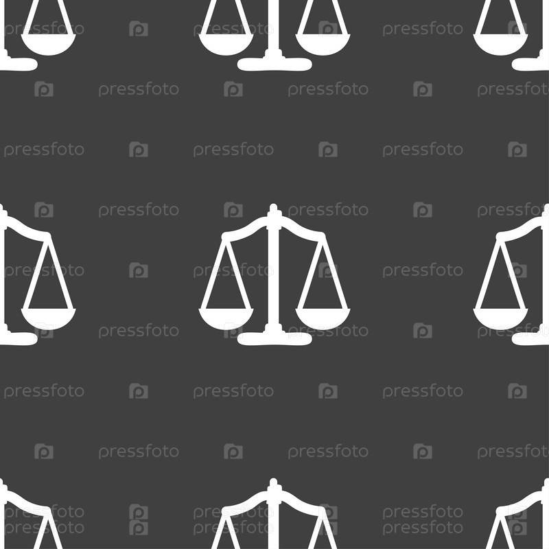 Весы баланс. Бесшовный узор на сером фоне. Вектор