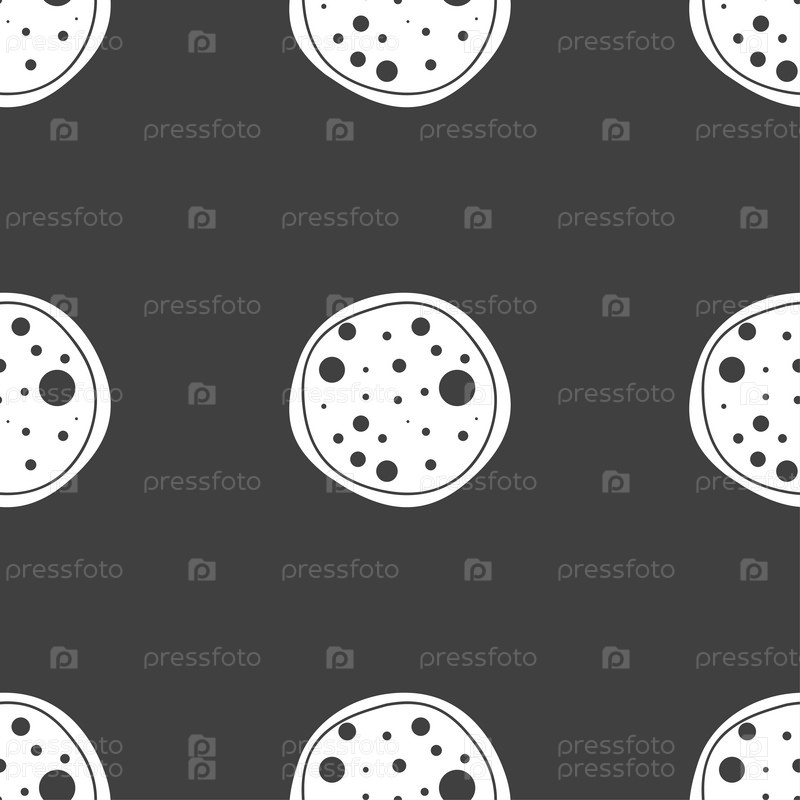 Пицца значок. Бесшовный узор на сером фоне. Вектор