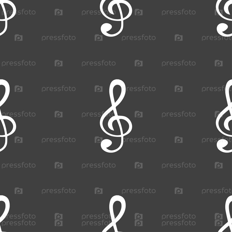 Скрипичный ключ икона. Бесшовный узор на сером фоне. Вектор