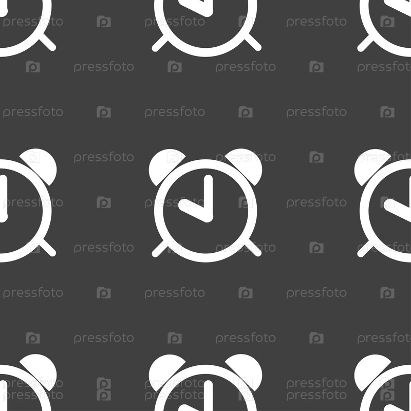 Будильник. Бесшовный узор на сером фоне. Вектор