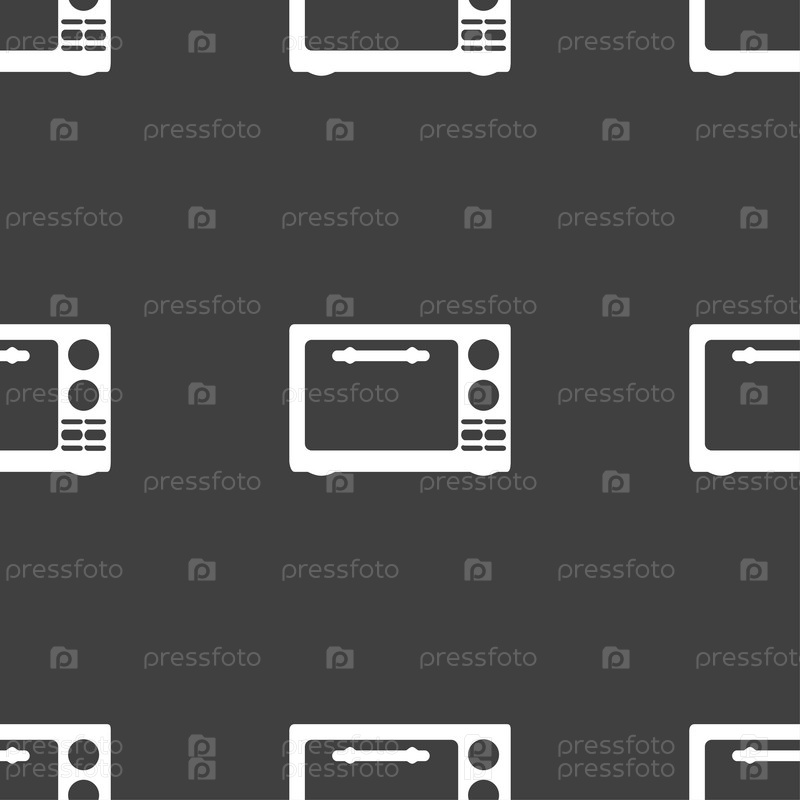 Микроволновая печь. Бесшовный узор на сером фоне. Вектор