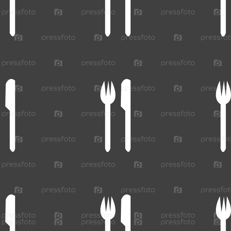 Вилка и нож. Бесшовный узор на сером фоне. Вектор