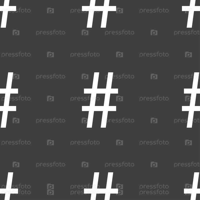 Значок хэш тега. Бесшовный узор на сером фоне. Вектор
