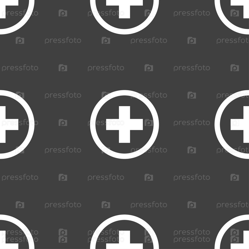 Знак плюс. Бесшовный узор на сером фоне. Вектор