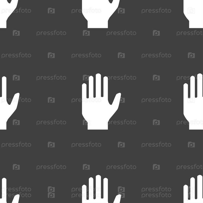 Значок руки, стоп. Бесшовный узор на сером фоне. Вектор