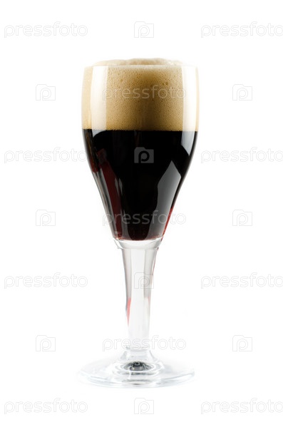 Бокал темного пива на белом фоне