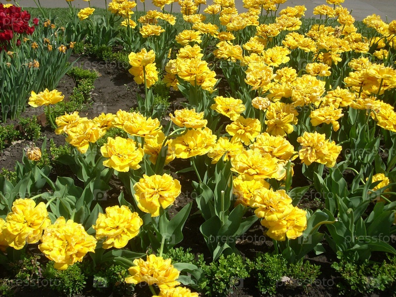 Желтые махровые тюльпаны в парке