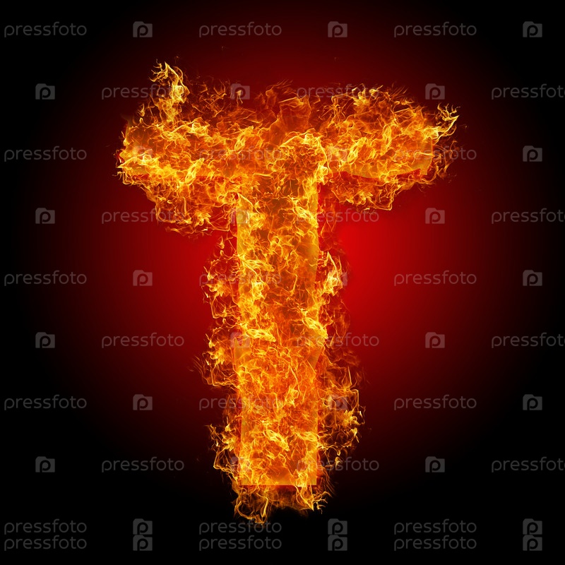 Горячая буква t на черном фоне