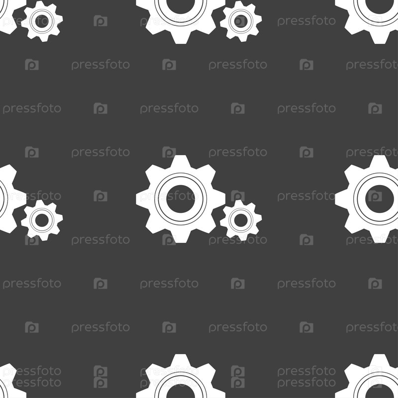 Винтик параметры знак значок. Зубчатая механизмом шестеренка. Бесшовный узор на сером фоне. Вектор