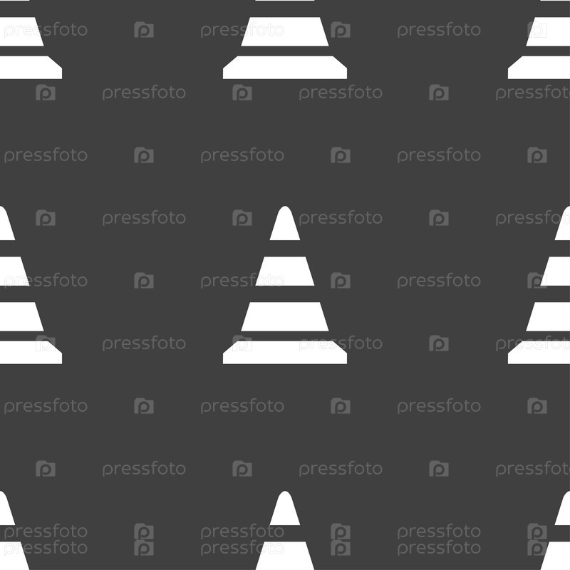 Значок конуса дороги. Бесшовный узор на сером фоне. Вектор