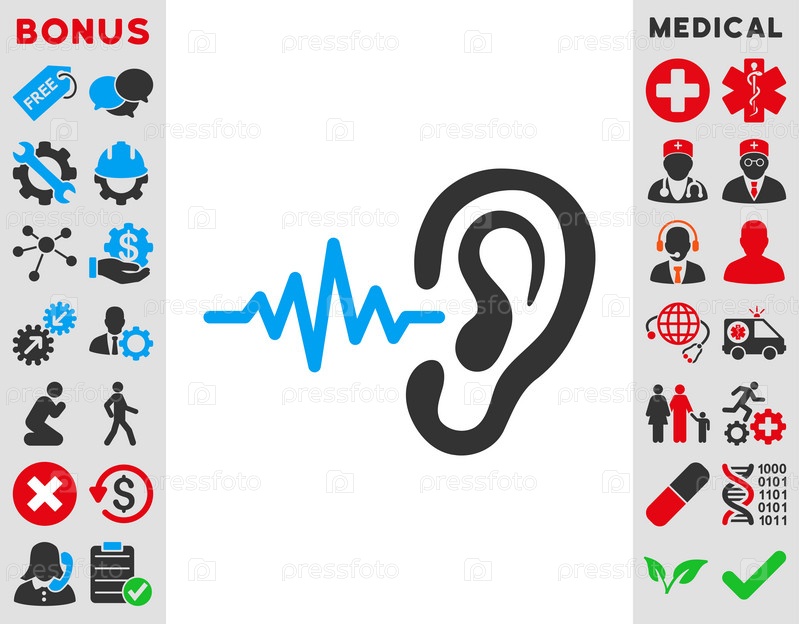 Прослушать иллюстрации значок. Стиль является биколор плоский символ, голубой и серый цвета, закругленные углы, белый фон
