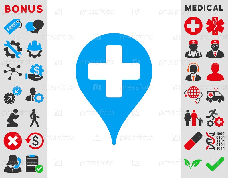 Медицинских икона иллюстрации маркер. Стиль является биколор плоский символ, голубой и серый цвета, закругленные углы, белый фон