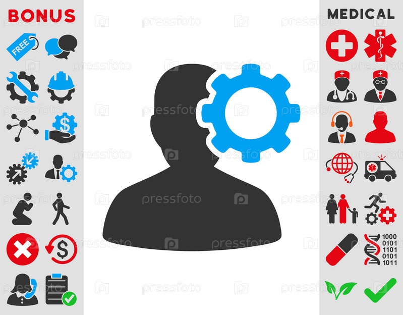 Мигрень иллюстрации значок. Стиль является биколор плоский символ, голубой и серый цвета, закругленные углы, белый фон