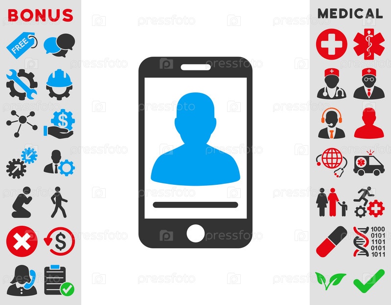 Мобильный контакт иллюстрации значок. Стиль является биколор плоский символ, голубой и серый цвета, закругленные углы, белый фон