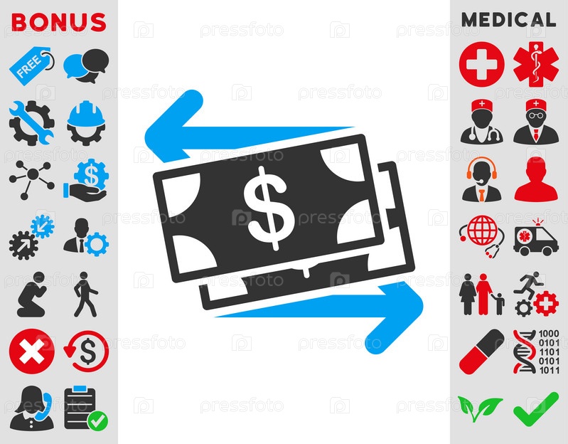 Деньги обмен иллюстрации значок. Стиль является биколор плоский символ, голубой и серый цвета, закругленные углы, белый фон