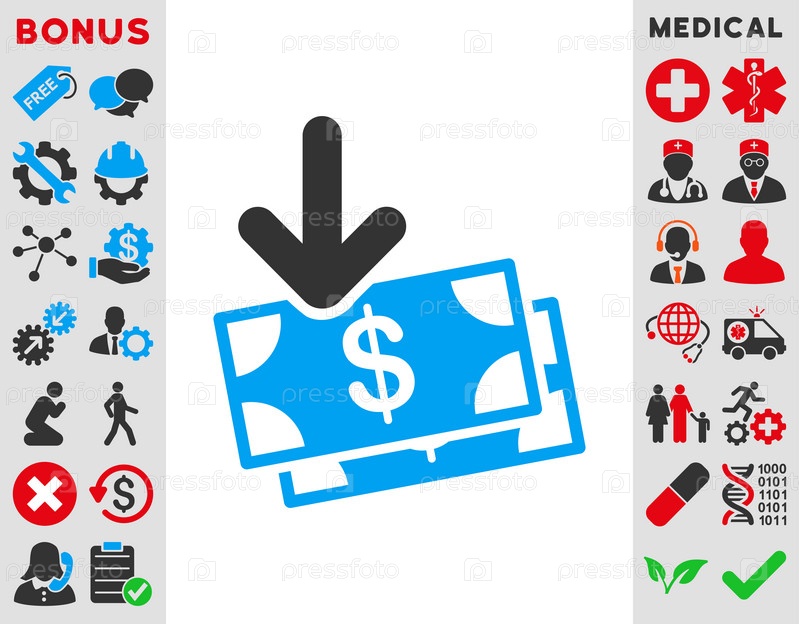 Деньги доход иллюстрации значок. Стиль является биколор плоский символ, голубой и серый цвета, закругленные углы, белый фон