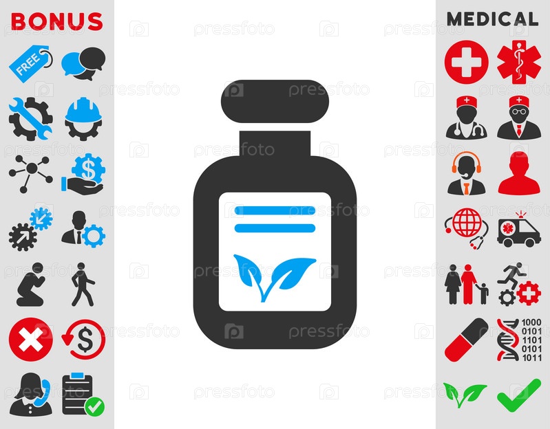 Природные лекарства иллюстрации значок. Стиль является биколор плоский символ, голубой и серый цвета, закругленные углы, белый фон