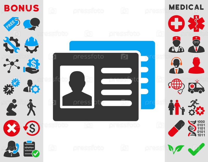 Пациент счетов иллюстрации значок. Стиль является биколор плоский символ, голубой и серый цвета, закругленные углы, белый фон