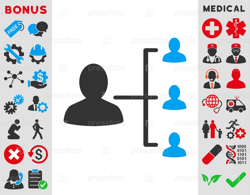Пациент значок Иллюстрация отношений. Стиль является биколор плоский символ, голубой и серый цвета, закругленные углы, белый фон