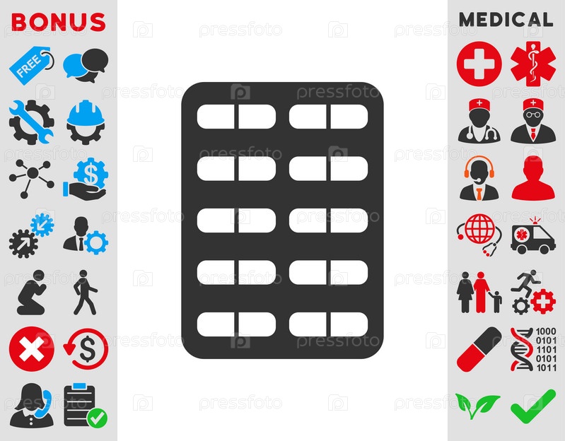 Таблетки иллюстрации значок. Стиль является биколор плоский символ, голубой и серый цвета, закругленные углы, белый фон
