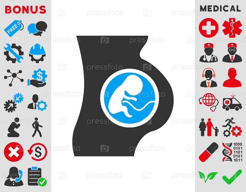 Беременная женщина иллюстрации значок. Стиль является биколор плоский символ, голубой и серый цвета, закругленные углы, белый фон