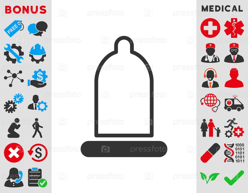 Презерватив иллюстрации значок. Стиль является биколор плоский символ, голубой и серый цвета, закругленные углы, белый фон