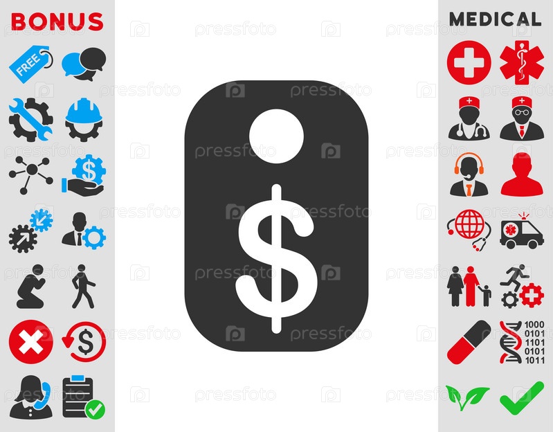 Цена тегов иллюстрации значок. Стиль является биколор плоский символ, голубой и серый цвета, закругленные углы, белый фон