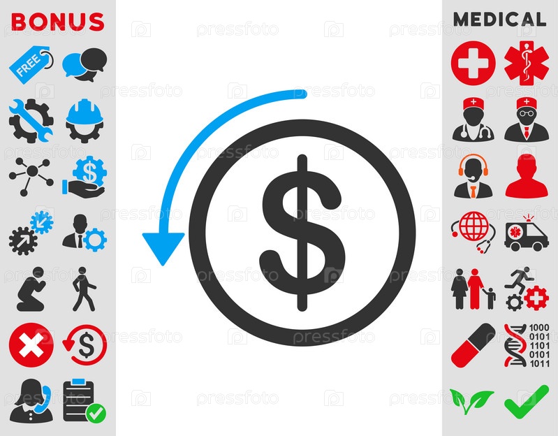Иллюстрация значок возврата. Стиль является биколор плоский символ, голубой и серый цвета, закругленные углы, белый фон