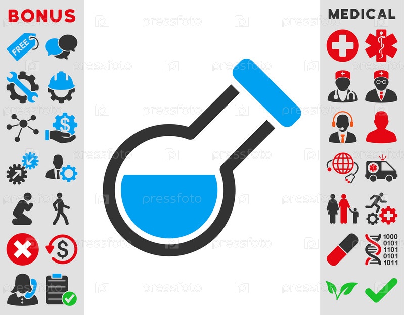 Колба иллюстрации значок. Стиль является биколор плоский символ, голубой и серый цвета, закругленные углы, белый фон