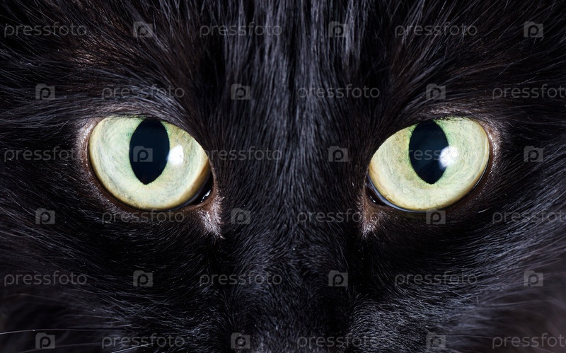 Черная кошка крупным планом