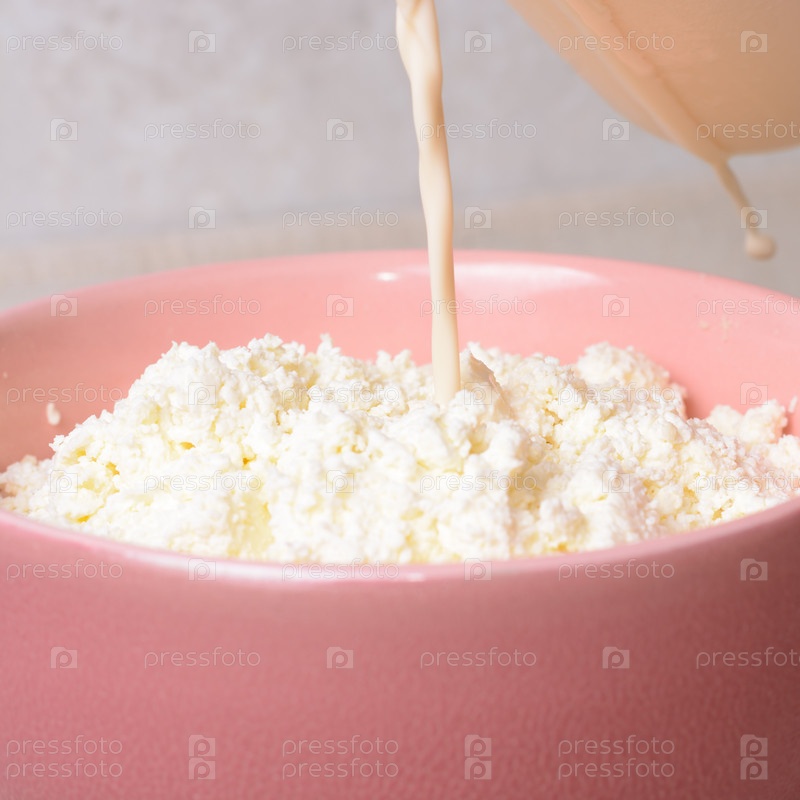 Топленое молоко наливают в творог