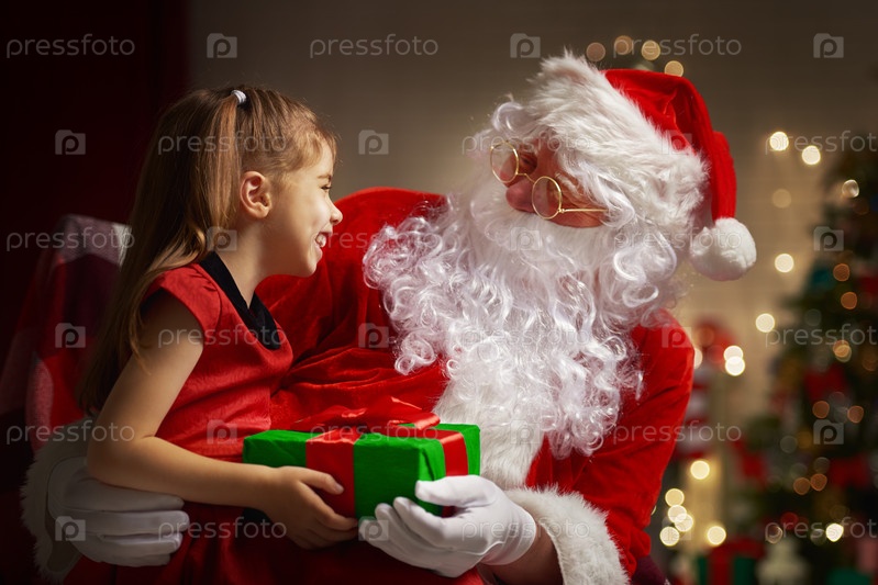 Санта-Клаус и маленькая девочка