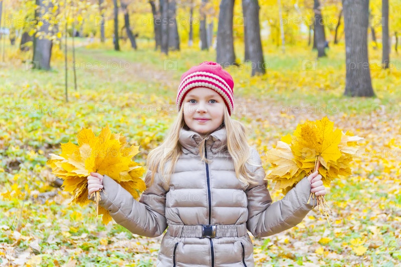 Девочка с осенними листьями