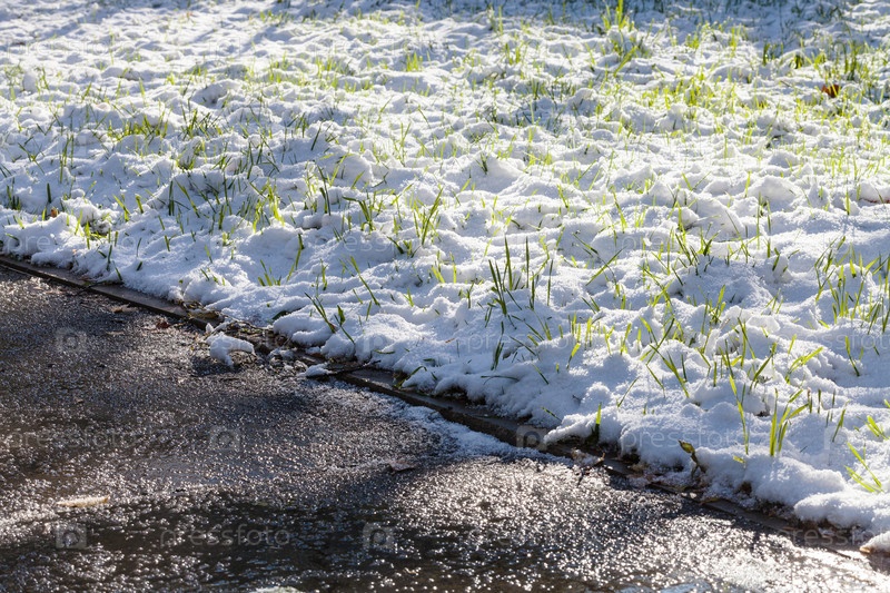 Первый снег на зеленой лужайке