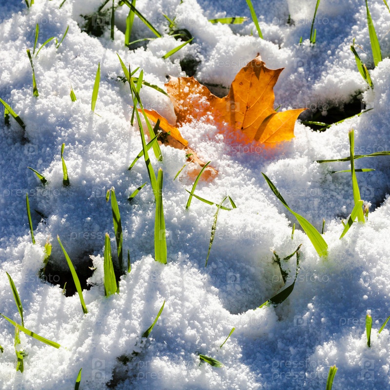 Первый снег на зеленой лужайке