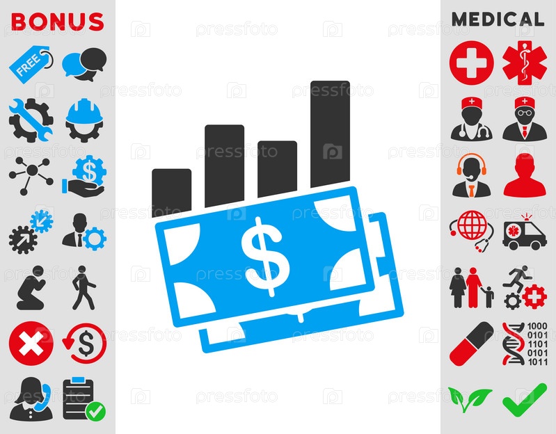 Линейчатая диаграмма продаж иллюстрации значок. Стиль является биколор плоский символ, голубой и серый цвета, закругленные углы, белый фон