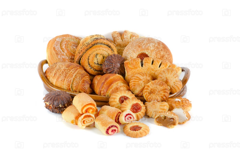 Свежая выпечка на белом фоне