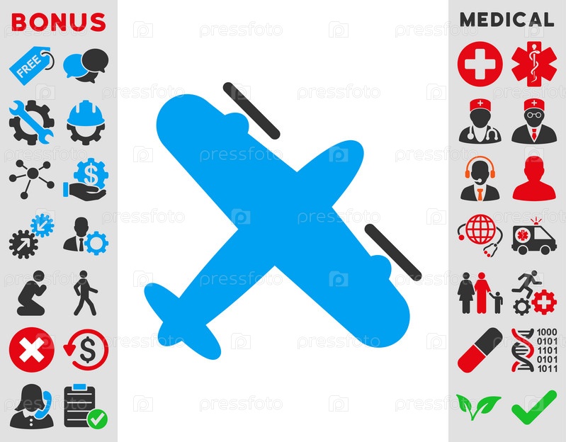 Винтовой самолет иллюстрации значок. Стиль является биколор плоский символ, голубой и серый цвета, закругленные углы, белый фон