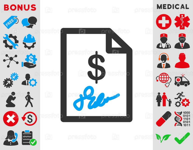 Подписанный счет иллюстрации значок. Стиль является биколор плоский символ, голубой и серый цвета, закругленные углы, белый фон