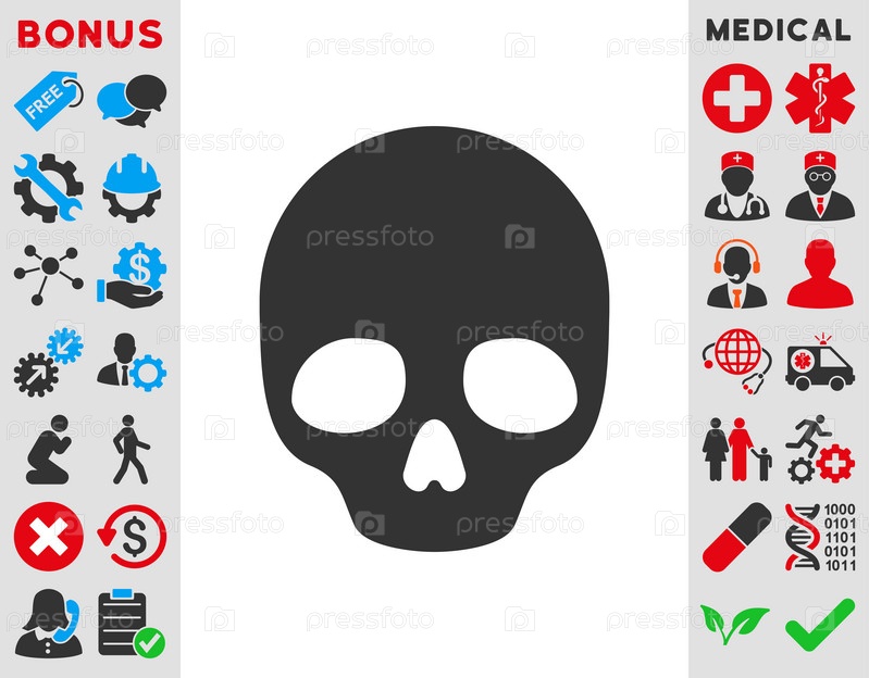 Череп иллюстрации значок. Стиль является биколор плоский символ, голубой и серый цвета, закругленные углы, белый фон