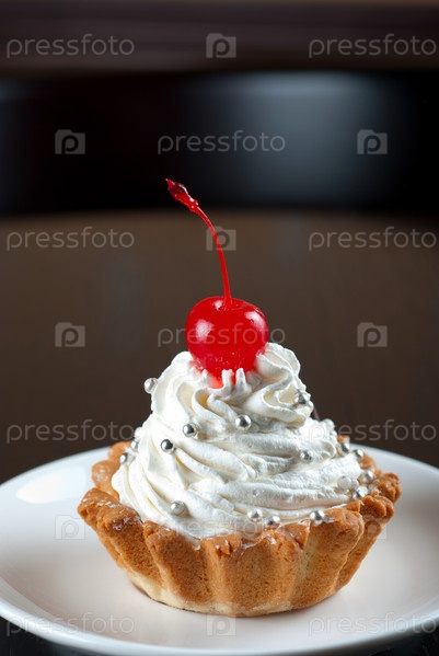 Пирожное-корзиночка со сливочным кремом и вишенкой