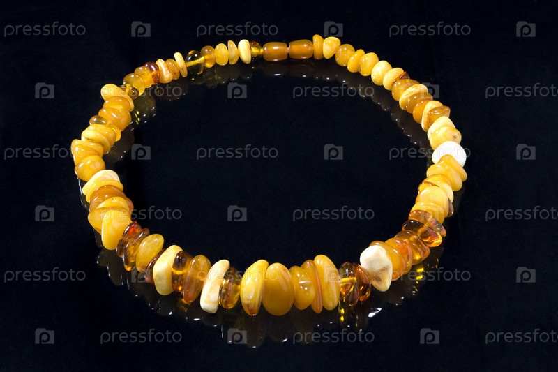 Бусы женские из янтаря на черном фоне с отражением